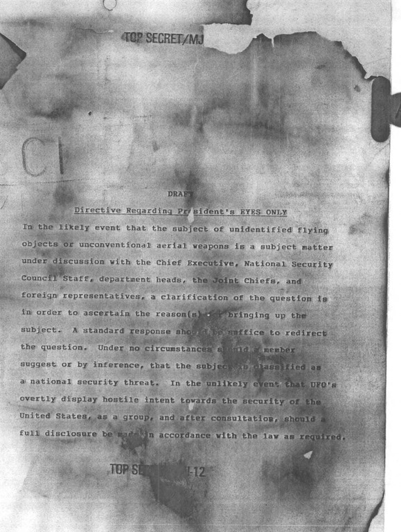 de1cabd0-8ea7-4913-8748-1d2488c38e35_734x592En otras palabras, MJ-12 debe ignorar por completo la directiva 5200.1 sobre la protección de la información oficial, A MENOS QUE se especifique en la Orden Ejecutiva Especialmente Clasificada ejecutada por el Presidente Harry S. Truman el 24 de septiembre de 1947 y aprobada por el altamente secreto Grupo 54/12 creado por el Vicepresidente Richard Nixon y aprobado por el Presidente Eisenhower en la Directiva del Consejo de Seguridad Nacional NSC 5412 el 15 de marzo de 1954.