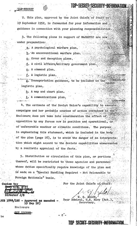 Como veremos, la ausencia de una referencia al despliegue de armas nucleares o acciones de guerra convencional en los planes de guerra de MAJESTIC parece indicar fuertemente que estos planes eran alguna “otra” contingencia.