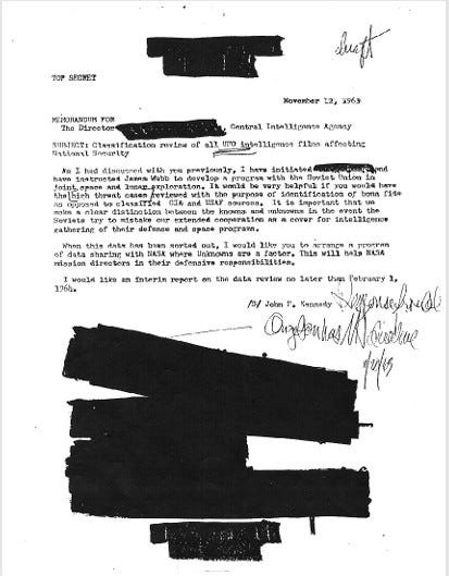 La historia no termina en la década de 1950. A principios de la década de 1960, el presidente John F. Kennedy, según se informa, comenzó a hacer preguntas sobre programas clasificados relacionados con ovnis, incluyendo actividades vinculadas a MAJESTIC y al escurridizo grupo MAJESTIC-12. Según relatos posteriores, esto alarmó al director de la CIA, Allen Dulles.