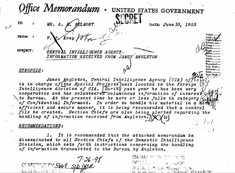 A partir de la publicación del archivo del asesinato de JFK en 2025, ahora sabemos que James Angleton se encargaría de esta directiva, ya que era un informante del FBI.