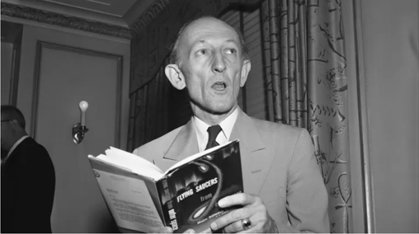 Entre los numerosos observadores de objetos voladores no identificados, un hombre, a partir de la década de 1950, llevó la investigación un paso más allá. Se llamaba Donald Keyhoe. Piloto y exmarine, escribía relatos fantásticos para revistas baratas y tenía contactos bien situados. Uno de sus jefes lo puso tras la pista de los ovnis. En enero de 1950, su artículo se publicó en la revista True. Titulado «Los platillos voladores son reales«, causó sensación. Se dijo en su momento que era uno de los artículos de revista más comentados de la historia. Ese mismo año, Keyhoe publicó un libro con el mismo título, del que se vendieron más de medio millón de ejemplares.