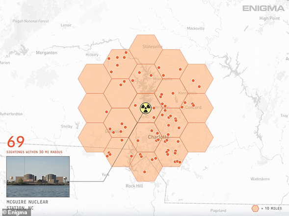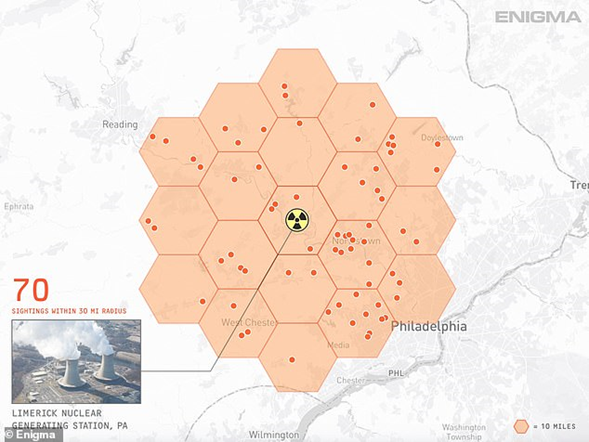 En total, Enigma Labs ha recopilado más de 1,800 informes de ovnis volando y flotando cerca de 53 plantas de energía nuclear en los EE. UU.