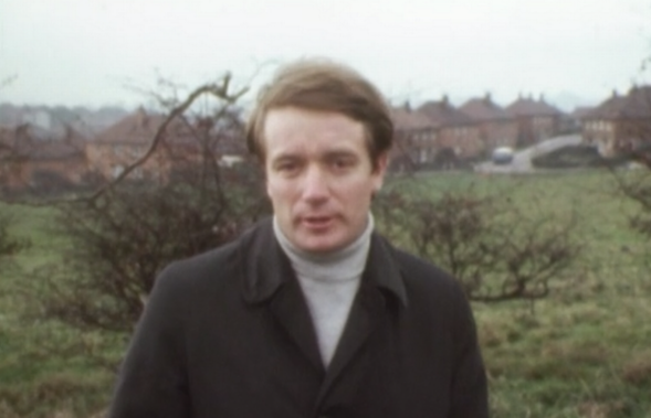 El presentador de ATV Today, Gwyn Richards, en el campo de Bentilee donde supuestamente aterrizó un ovni.