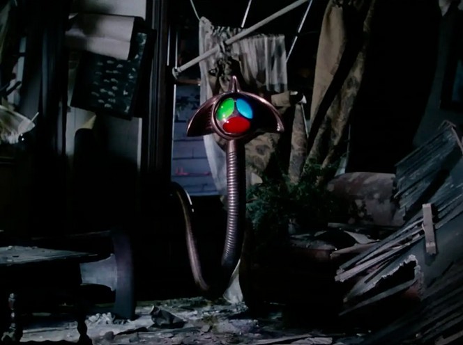 Un poco reminiscente del ojo de los marcianos en «La Guerra de los Mundos» de 1953, que se hizo eco en su dispositivo de sonda de cámara: