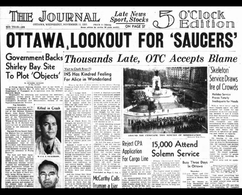 90ec88e37798a9b3b46e36be33ff9571En la década de 1950, se instó a los lectores del Ottawa Journal a estar atentos a los platillos voladores, después de que el Proyecto Magnet de Wilbert Smith recibiera espacio y equipo para operar desde Shirley’s Bay.