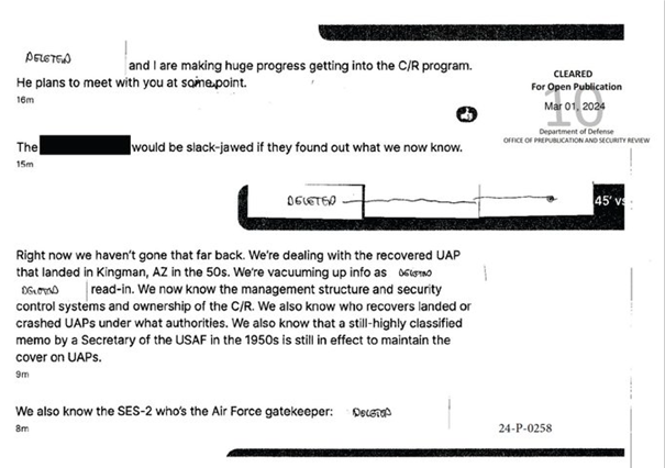 David Grusch, protagonista de la audiencia del subcomité de Supervisión de la Cámara de Representantes sobre ovnis/FANI en 2023, se mostró optimista sobre el impacto del documental en Washington. «Realmente creo», declaró a Brett Baier de Fox, «que si Trump quiere ser el mejor presidente y probablemente el líder más importante de la historia mundial, sin duda tiene el conocimiento, la capacidad y la comprensión de algunos de estos delicados temas de transparencia gubernamental».
