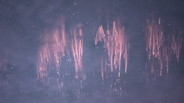 Estos anillos rojos son ejemplos de un fenómeno atmosférico poco común asociado con los rayos, denominado «emisión luminosa y perturbaciones de baja frecuencia debidas a fuentes de pulsos electromagnéticos» o ELVE. Este fenómeno ocurre durante tormentas eléctricas intensas, según informa el sitio web Spaceweather.com.