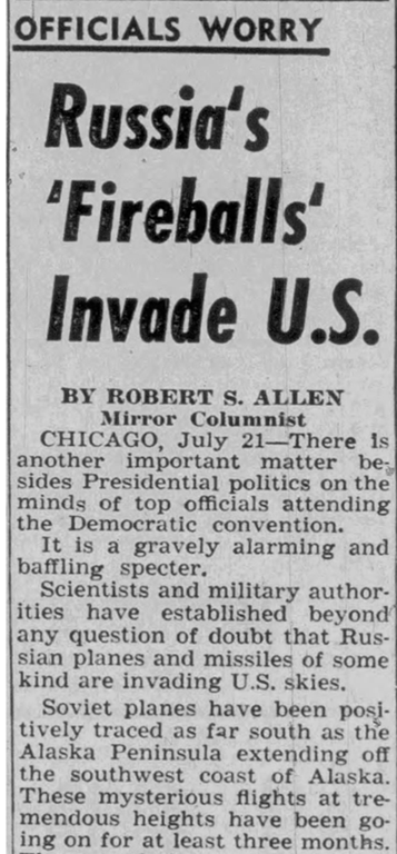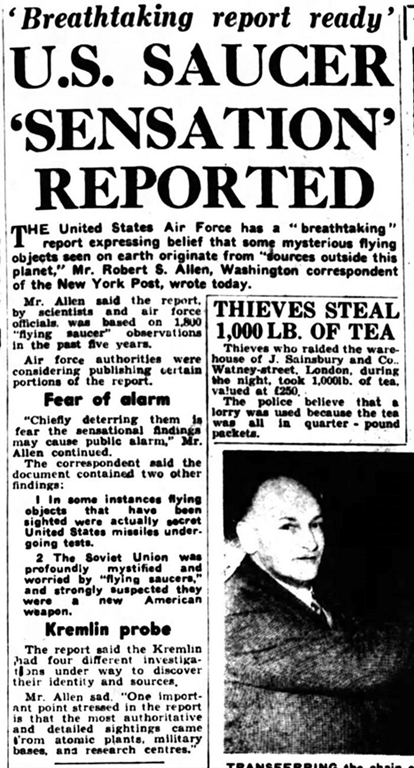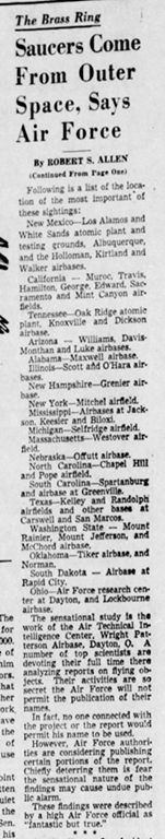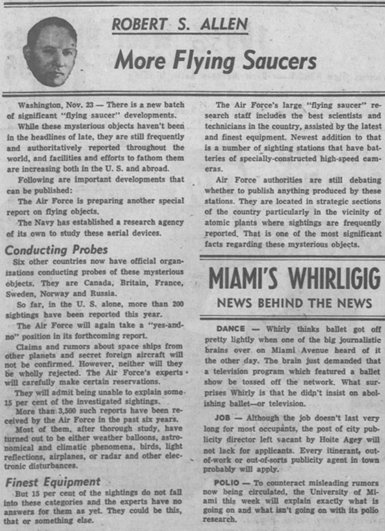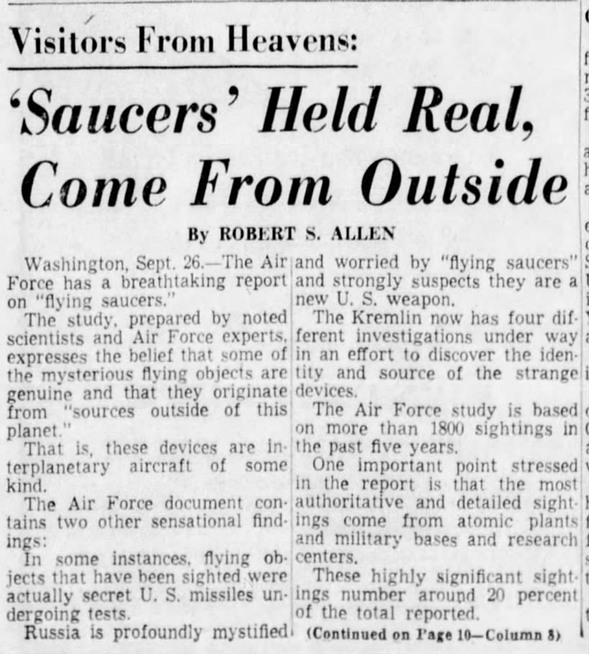 Contaba cómo Palmer envió a Arnold, famoso por acuñar por primera vez el término «platillo volante», a Tacoma, Washington, para comprobar una historia que habían contado Harold A. Dahl y Fred L. Crissman, dos guardacostas.